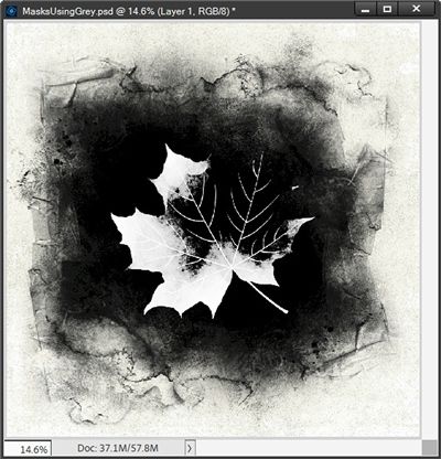 By using grey for the leaf detail, I created more transparency in the mask allowing the photo to show through a bit lighter in those areas. Remember at the beginning I said masks will recognize varying shades (or tones) in color values which causes the difference in transparency.