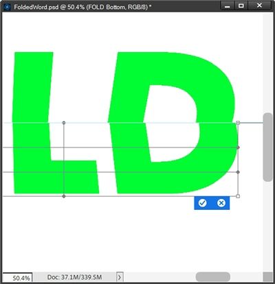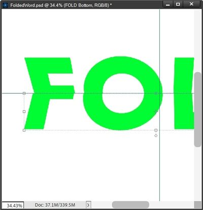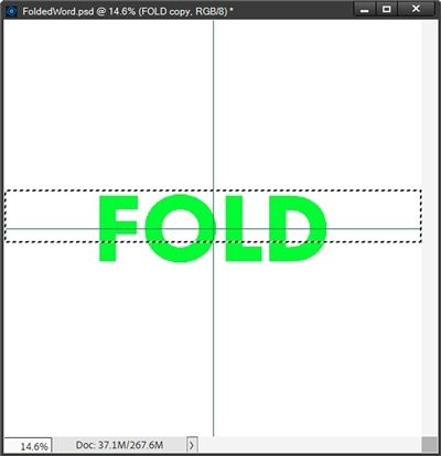 Then I just press Shift+Ctrl+J. PSE then cuts the top half of the word out and places it on a new layer. I rename this new layer FOLD Top. And I rename the original FOLD copy layer to FOLD Bottom. And the word doesn’t yet look any different!