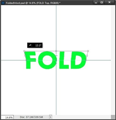 I’m now going to do the exact same thing on the FOLD Bottom layer. Only this time while holding the Shift key, I click on the bottom left corner anchor point and start to drag directly to the left until that “skew number” again reaches a positive 10 or so.