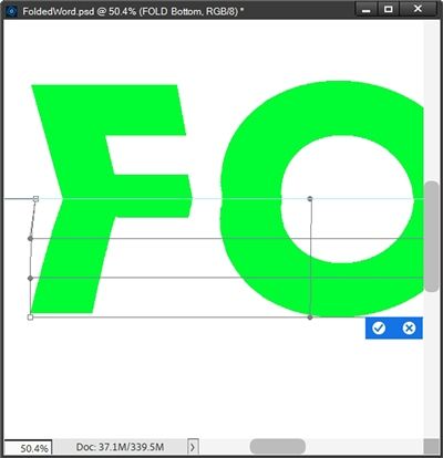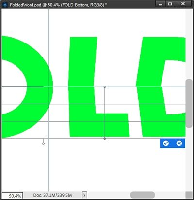 Now, before I click the check mark I always zoom in extra close and inspect the top of that bounding box to ensure none of the anchor lines have strayed up or down. If I find any of those, I just drag them back level with the center guide.