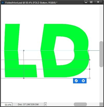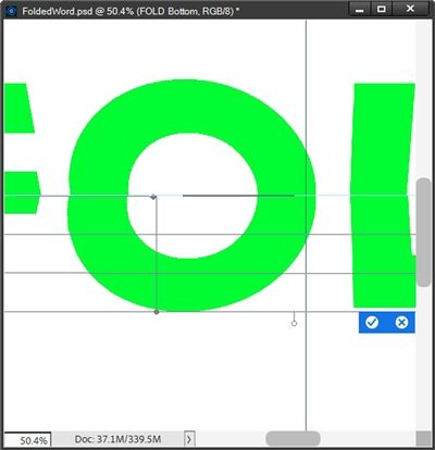With the FOLD Bottom layer active in the Layers Panel, I’m going to zoom in fairly close so I can see the mismatched edges starting with the F: