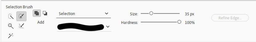 You can first make a rough selection with a marquee tool, Quick Selection tool, or other selection tool, and then fine-tune your selection with the Selection Brush tool. You can add to the selection using the Selection Brush tool in Selection mode, or subtract from it in Mask mode.